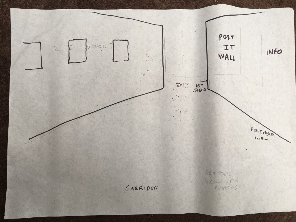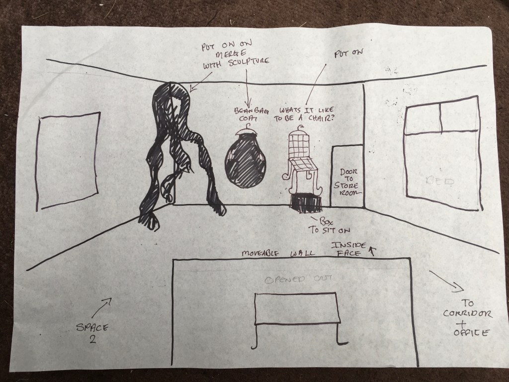 It’s also calming to draw ideas out. I really need to plan as much as I can to keep calm running up to installation. Once the work is finished and packed it’s difficult to not panic a little, anticipation is a funny thing, The plans and mock up also contribute to the documentation for my MFA final hand in.