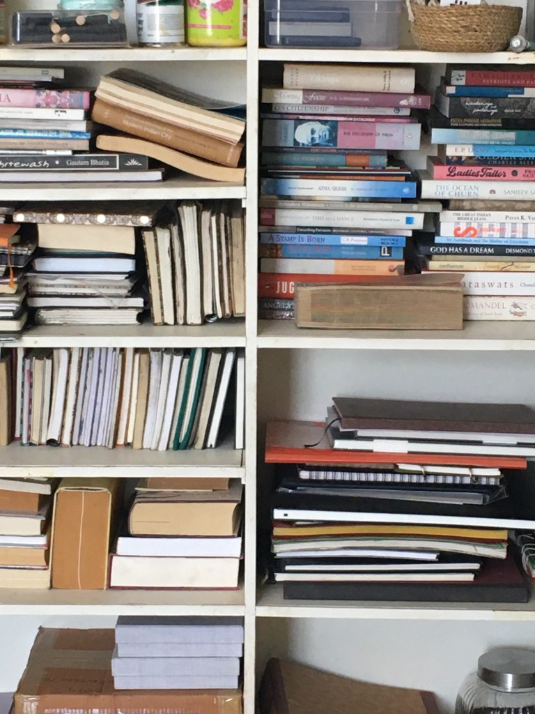 I’ve been kindly allowed to use Subodh’s studio which has great light and beautiful high ceilings. The peace in this space is palpable after the chaos of getting here.