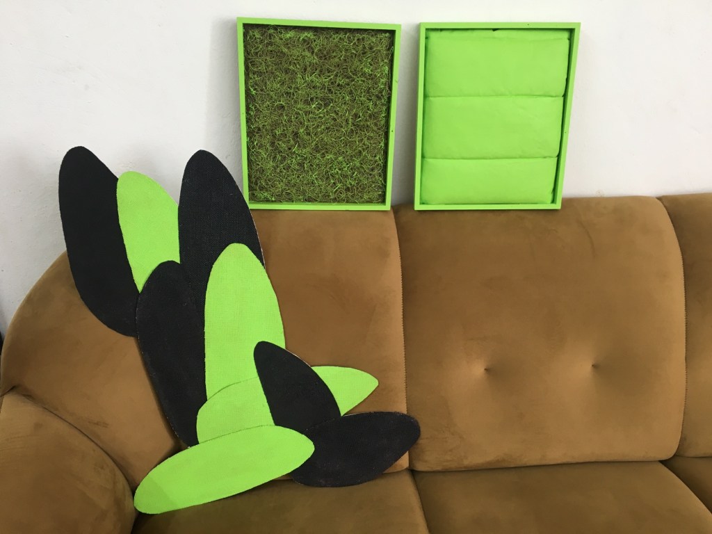 I’ve finalised 6 small works which are being backed with hardboard and fixed with hangers. Still have some work to do on them but the main structure is ready. I’ve also pretty much finished two rice forms which will also be glued down onto hardboard so hangers can be attached, or I may use Velcro (I have to think about transport home for these pieces). Some will be left in Goa to fill Subodh’s many venues.