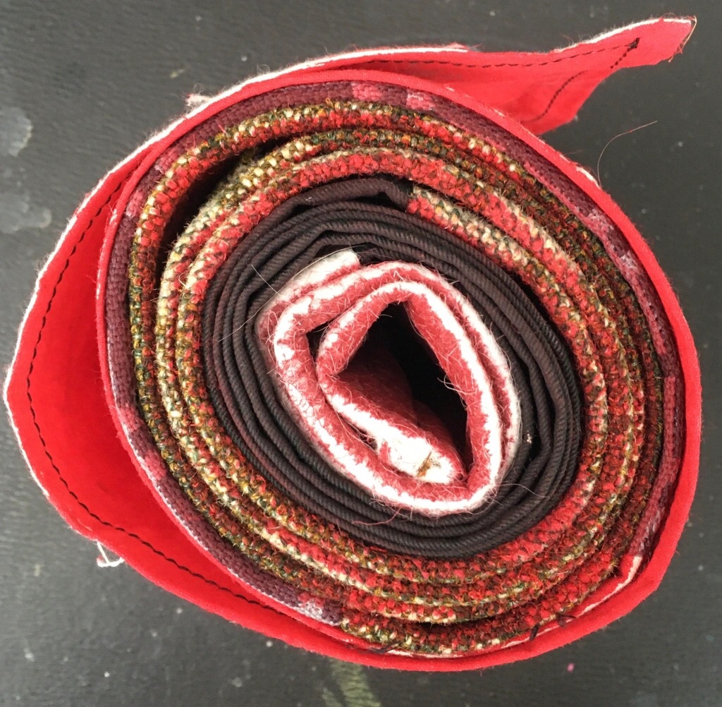 Lots of finishing today. Decided what to do with the rolls of coloured fabric I brought with me and started a large round canvas which will go on the end wall.