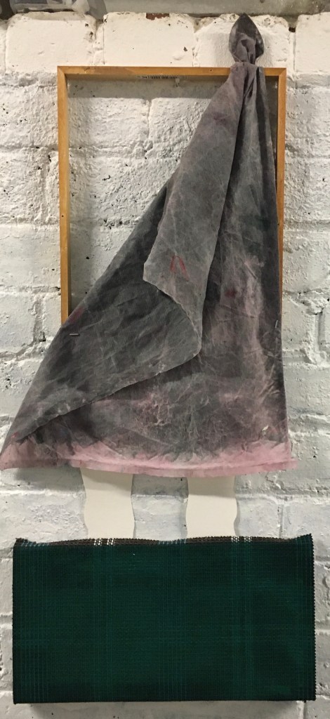 1 piece involving strips of painted Welsh waste fabric scraps from my husbands upholstery workshop.