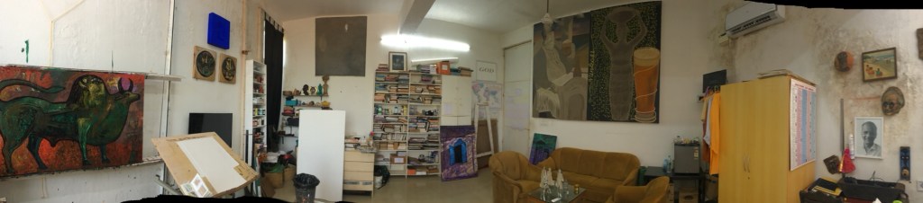 I’ve been kindly allowed to use Subodh’s studio which has great light and beautiful high ceilings. The peace in this space is palpable after the chaos of getting here.