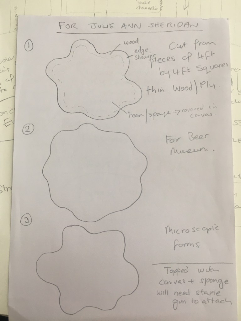 I’ve decided to use a circular canvas for the end wall as there’s a running theme of circular work here at MOG so why not join in.