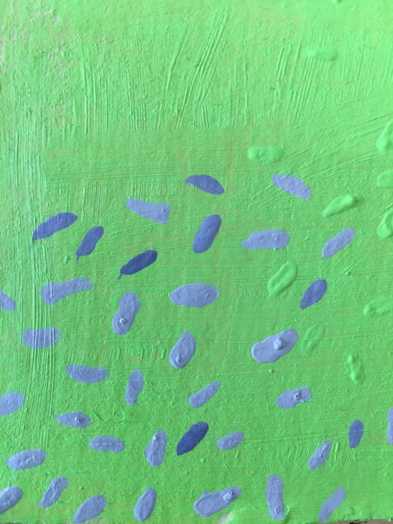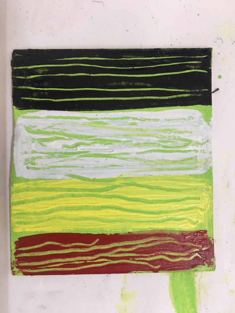 Then began 5 hrs of adding layers, some almost glaze in form and others direct from the tube. The final two pieces worked on took time to dry in between layers, so working on one while the other dried payed off. The whole session was quite meditative, slowly responding to where the colour and brush wanted to leave a mark. Some time was spent in silence and other listing the the audio book, The Book of Trespass, which is brilliant (kindly shared with me by Lisa Roberts) https://lisaroberts.fi/