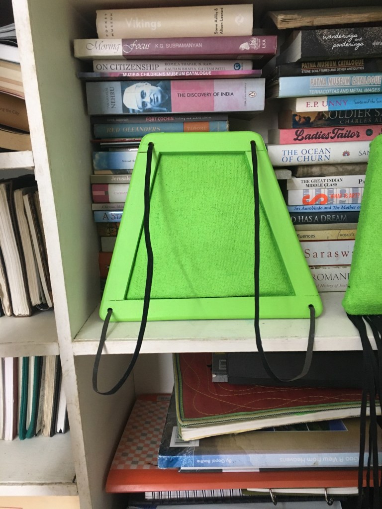 A day for planning possible display methods. So from the floor to shallow shelving. Really enjoying the order of the shelf but this method will work alongside wall pieces, drapery and hopefully some larger artworks to be produced in India.