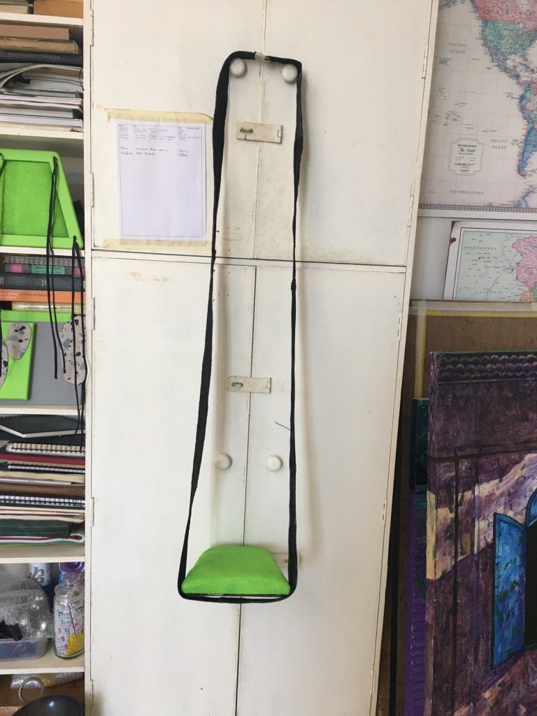 Also lots of play with suspending and balancing paintings using fabric strips as supports.