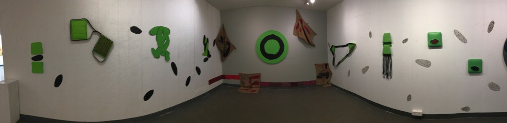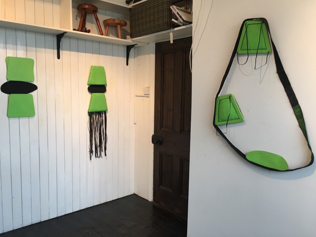 I started this residency on the first of January so the work has been produced in two weeks. It’s all made from re used materials, apart from the paint. I kept the pieces small but decided to link them using fabric and various forms. This was done with transport in mind not only for sales but for bringing them back with me to UK.