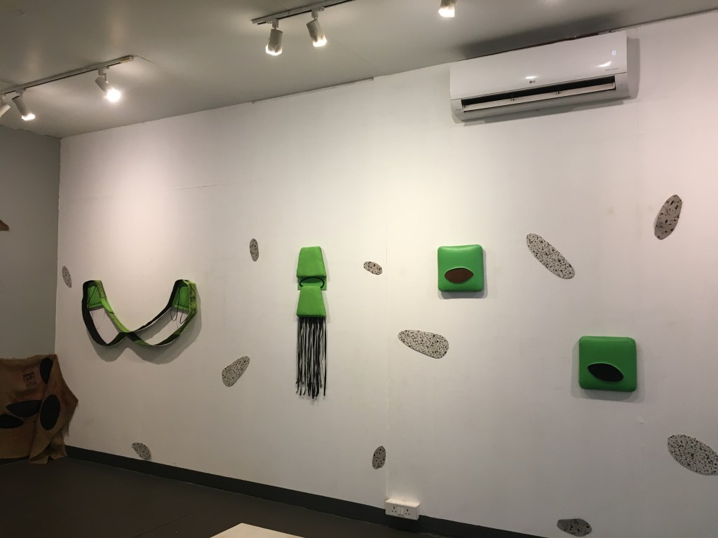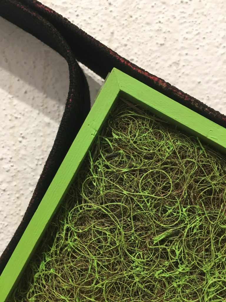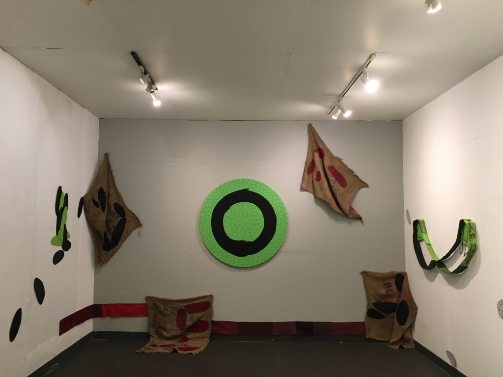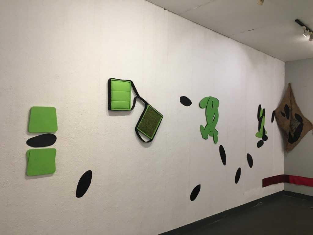 Julie’s main focus is extended painting, how it challenges the historical flatness of traditional painting on canvas and how it responds to its specific environment, considers various surfaces as a whole and challenges spatial illusion within its specific, installation environment. Exploring the materiality of paint and painting, its connection to other disciplines, while holding onto the specificity of the canvas, pushing practice beyond the edge, to further understand the potentiality of painting and paint assubjects and paint as a language in itself. Process is ongoing and experimental, were through concept and production, materials ask questions, guide outcomes and provide a space where there are no rules. Guided by theories of hierarchical practice, the work engages with the politics of materiality and its connections to sustainability.