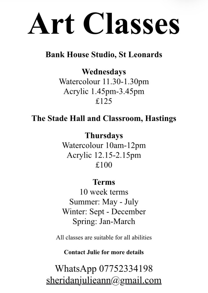 From January 2025 there will be more art classes at The Stade, tutored by Julie Ann Sheridan.