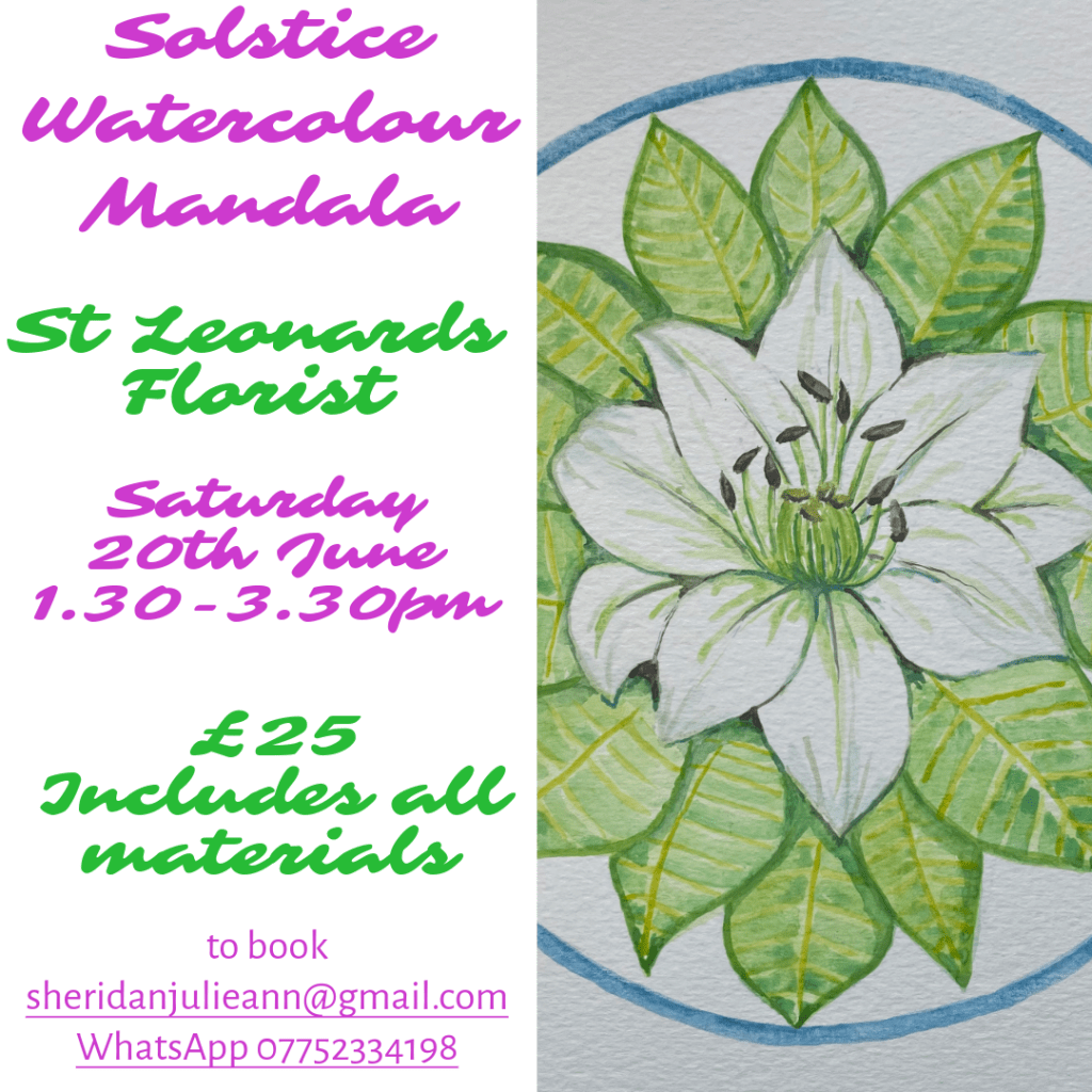 Both classes start on 17th October, Watercolour 10am-12pm and Acrylics 12.15-2.15pm